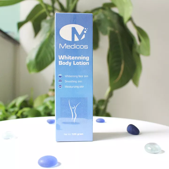 Với giá khá “chát”khoảng 1,5 triệu (120ml), kem trắng da Medicos Whitening Body Lotion giúp bật tông, cải thiện màu da khác nhau, giúp da sáng hồng tự nhiên. Kem dưỡng với kết cầu kem mềm mịn, nhẹ, giúp thẩm thấu nhanh vào da, cung cấp độ ẩm cho da, làm đều màu da kể cả những vùng da xỉn màu.